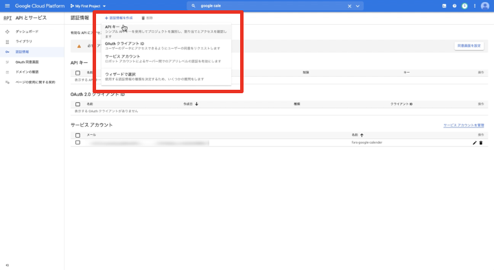 注意 カレンダーの共有設定で「1.GoogleカレンダーAPIキー」で作成したjsonファイルを使用します。