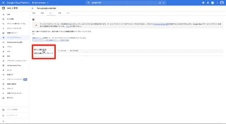 「サービス アカウント名」部分で「fors-google-calenderI」を入力してください。