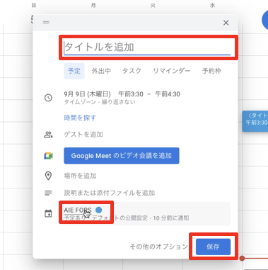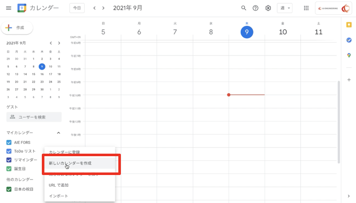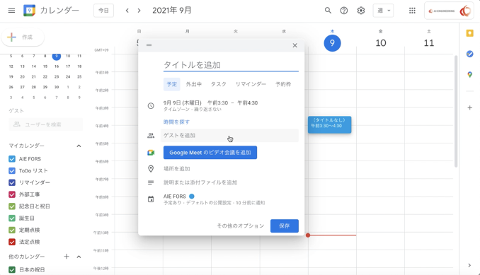 ここまでできたらGoogleカレンダーの登録は完了です。続いて、カレンダーの共有設定を行っていきます。