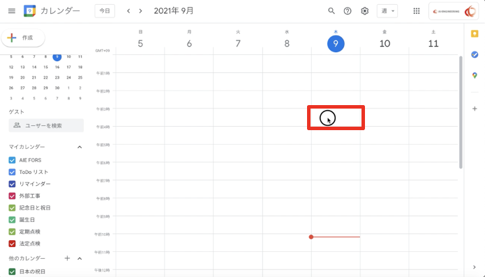 さきほど登録した予定がスケジュール画面上で表示されていたらGoogleカレンダーの連携は成功です。
