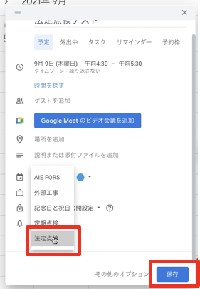 カレンダーの名前に「○○工場_法定点検」のようにどこの工場かわかる名前を入力してください。