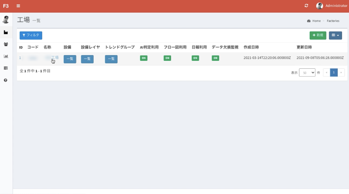 工場一覧が表示されます。Googleカレンダー連携を行いたい工場の「名称」を押してください。