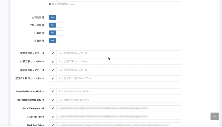 工場詳細画面を下にスクロールするとGoogleカレンダーAPIの設定画面があります。
