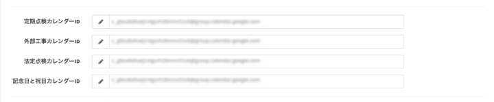 先程記録したカレンダーIDは、それぞれ該当のカレンダーIDの入力欄に入力してください。