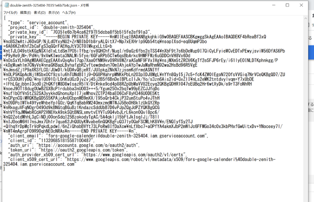 注意 「1.GoogleカレンダーAPIキー」で作成したjsonファイルを使用します。