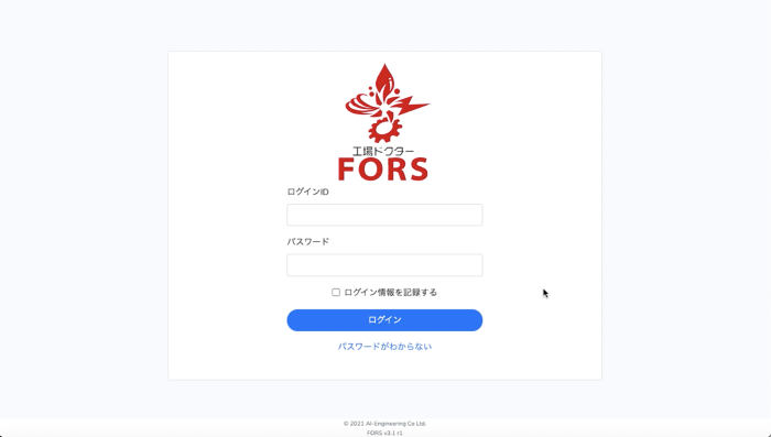 FORSのログイン画面からIDとパスワードを入力してログインしてください。
